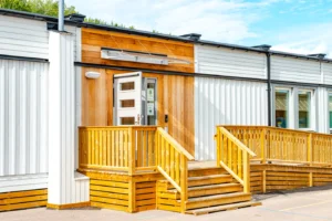 Skolmoduler från MG Link är konstruerade för att även det tillfälliga ska ha riktigt god, bestående kvalitet. Ett viktigt fokus i våra skolmoduler har varit att uppnå största möjliga tystnad inne i skolpaviljongens lokaler.