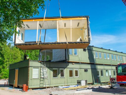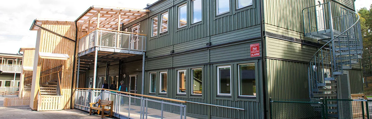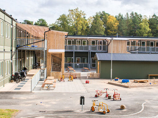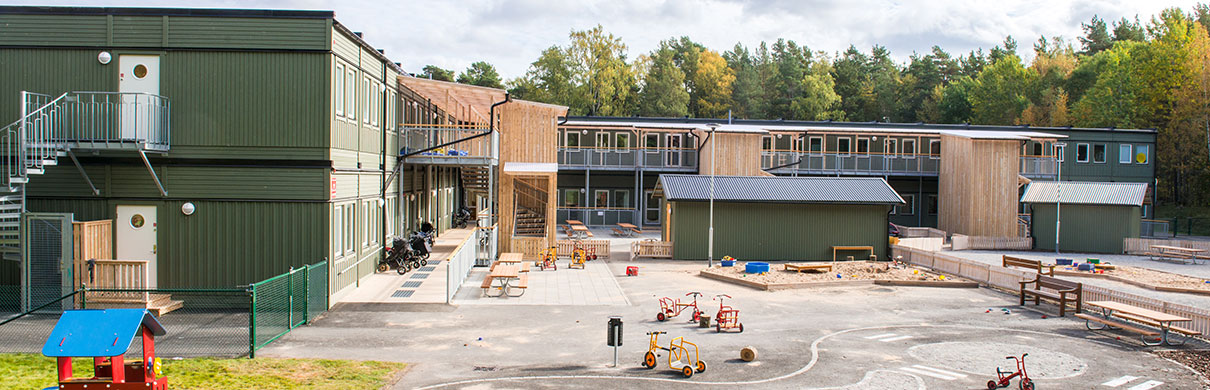 Upplands-Väsby kommune hadde behov for raskt å etablere midlertidige, men fullverdige barnehagelokaler for ti avdelinger, med høy driftssikkerhet og kapasitet for to produksjonskjøkken.