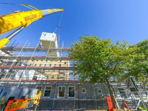 Region Gävleborg moderniserer Hudiksvalls sykehus. Som en del av arbeidet leier sykehuset et modulbasert helsebygg i tre etasjer for fødeavdeling, barneavdeling og nyfødtintensiv. Lokalene skal benyttes i ca. 7–10 år frem til et permanent sykehusbygg står ferdig på en annen del av området.