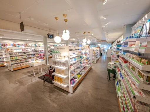 • Støttearealer: Administrasjonsrom, personalrom og kjøkken for både apotekets og Nærhelsens behov.