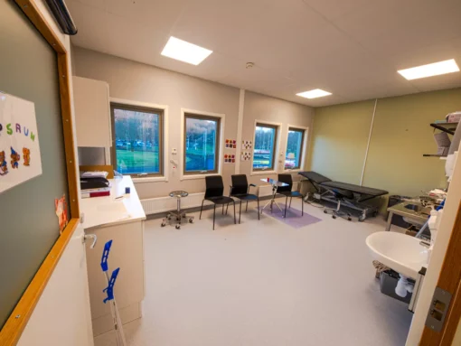 • Andre etasje: Mottak for Nærhelse med arealer for triage, akuttbehandling, gipsrom m.m.