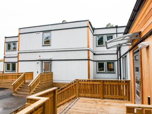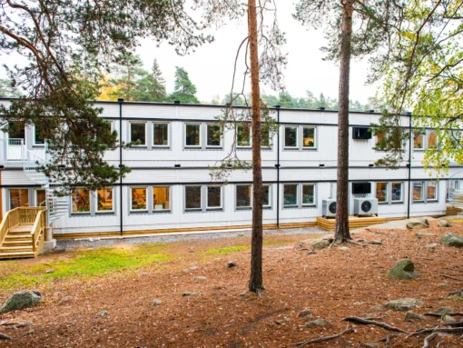 MG Link etablerte et skolebygg i to plan og en frittstående danselokal med leiemoduler utviklet for høy lydkomfort og arbeidsro.