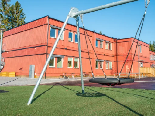 Gäddeholm øst for Västerås vokser raskt. Med flere familier øker også behovet for funksjonelle og trygge skolelokaler. Skolen startet 2019 og hadde behov for en løsning som kunne skaleres i takt med elevveksten – uten lang byggetid på stedet.
